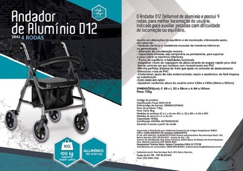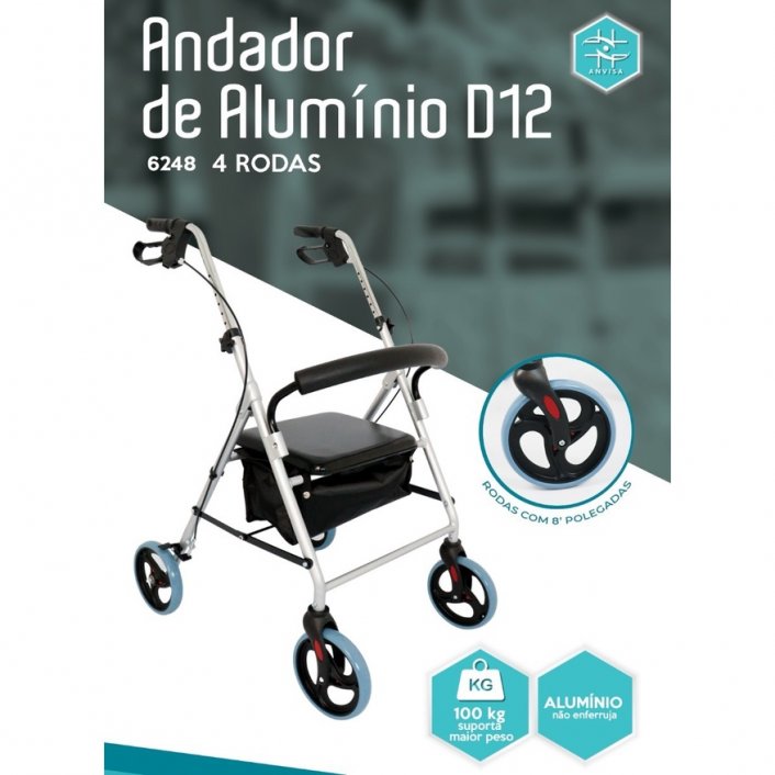 O Andador em Alumínio Dobrável com Assento, Rodas e Freios modelo D12 - Dellamed é indicado para usuários com mobilidade reduzida, idosos, pós operatório. Com um sistema completo com 04 (quatro) rodas, sistema de freios nas manoplas, assento para descanso com suporte para as costas e ainda é dobrável para não ocupar muito espaço, é o produto ideal para atender sua necessidade. Veja as características abaixo: