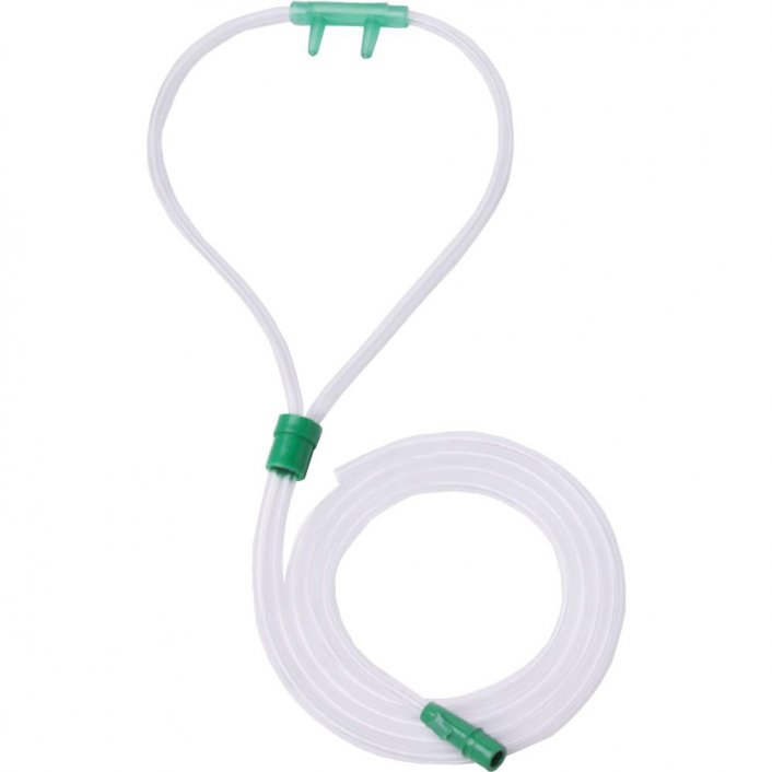 Cateter Nasal para Oxigênio Embramed Tipo Óculos. Dispositivo para instilação de oxigênio ou ar comprido através de introdutores nasais do paciente promovendo a elevação da concentração de oxigênio ou de ar na arvore traqueobrônquico alveolar proporcionando elevação da saturação de oxigênio no sangue circulante (s.a.PO2) -